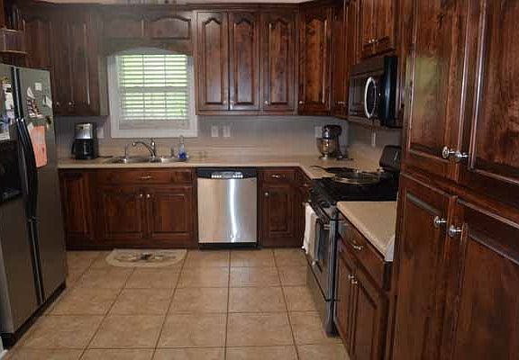 Move in ready vinyl siding home on +-3 secluded acres. Private stocked pond w 18x10 fishing pier. Home has open floor plan, new carpet(not has shoes on it), split floor plan, tall ceilings, foyer&formal dining have hardwood. Tile in wet areas. Gas log fireplace. Lots of windows &covered porches. Glanour master bath w whirlpool&sep shower. Large closet space. Tons of custom cabinetry plus an island w pendant lighting &build in pantry area. Spacious breakfast area w dbl chandelier lighting &bay window. Large laundry w half bath. Bonus redone &used as mini apt. Storm shelter accessed from garage. Barn on property, 50yard bow/target area off driveway. New private drive+Fencing.