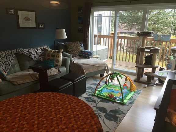 Updated Douglas Island condo with a view. Townhouse style condo for sale on South Douglas. Conveniently located close to restaurants, schools, and shopping with beautiful views of downtown Juneau across the channel. Watch downtown fireworks from your living room or master! 20 minutes from Eaglecrest ski area. Kitchen, living space, and half-bath on 1st floor. Updated kitchen has newer cabinets with tons of storage and great counter space. Kenmore appliances, including dishwasher and newer Maytag microwave/convection/range hood above stove. 2 Bedrooms, full bath, and washer/dryer on 2nd floor. Energy efficient (4+ Star) with R30 crawl space insulation, newer electric baseboard heat with programmable thermostats, and vinyl windows throughout. New windows and sliding patio door bring in more light than original windows. Laminate floors throughout, with the upstairs completed just last year. 4'x10' storage area adjacent to front door (crawl space access and access to electric water heater). Condo dues cover everything except electric, which averages $110 a month including heat during the winter. The Forest Edge Condo Association is in great shape with lots of reserves for upcoming improvements/ projects, and is approved for Alaska Housing Financing. The condo is available for move in the January 1st. Contact For more information or to schedule a viewing call/msg Johnny at (907) 209-0275.