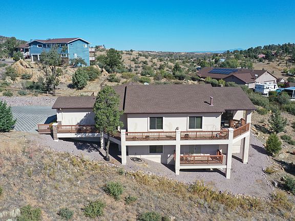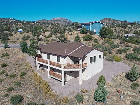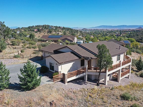 This beautiful home is so close to town but has a lot of space between you and your neighbors. Nice Elevated Lot with views of Prescott and the Granite Dells. This home is on almost half an acre and also includes the lot next door that is .40 of an acre giving you almost an acre of land in town. Home has a very private gated driveway. Two master suites, one on the main floor and one on the lower level. Home is over 3000 Sq Feet which features a Nice open Kitchen and eat-in dining, spacious bedrooms, Laundry room with sink and an office on main level. What makes this home so great is it's Large Secondary Living on the lower level. It's Great for kids, guest or any Family visiting and needing extra Space! . Home also has great Storage everywhere.