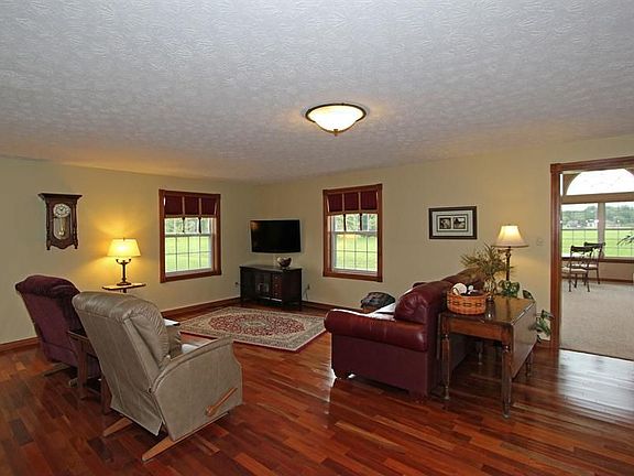 Beautiful brick two story on 10 acres! This home has been meticulously cared for and remodeled with all new hardwood floors on main floor, carpet on upper level, new tile floors and walk-in tiled shower in master, new fixtures, new quartz kitchen counters, int/ext paint. Home features Amish Hickory cabinets, solid poplar trim and doors, huge sunroom, lg office on main could be 5th BR or Dining Rm, windows - no maint, 6" ext walls, driveway alarm, asphalt circular drive, Det 32x48 garage! Wow!