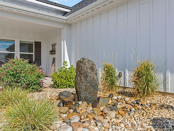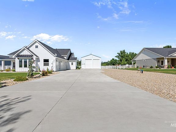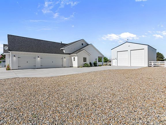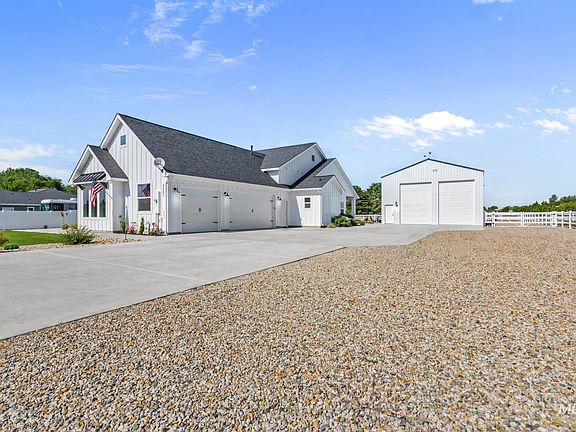 Welcome home to this modern farmhouse which is situated on a private lane, minutes away from the Payette River and Black Dam Reservoir. Sit on the large, covered front patio and enjoy the beautiful mountain views and stone water feature. The kitchen offers stainless appliances, granite countertops, soft close drawers, under cabinet lighting, Bosch dishwasher and an entertainer's island with a deep quartz sink. The master bedroom is located on the opposite side of the home than the other 3 bedrooms and has access to the covered patio. Beautiful 3 rail white vinyl fencing with two gates is installed along with full landscaping. Plenty of room for your toys, with the extensive concrete driveway and additional parking area. The shop is 40x30 ft. has a 200 amp. electrical panel, two 10x14 roll up doors, pre-wired for door openers, fully insulated and plywood to 8ft. RV outlet and LED lighting. Enjoy entertaining and the beautiful sunset off your fully covered back patio with an additional pergola and lighting.