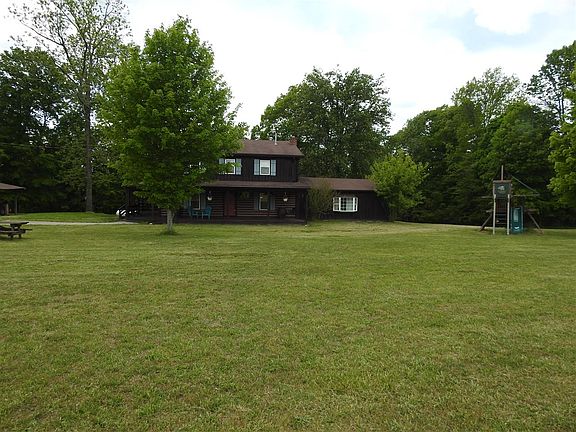 County living at it's best! Two story log home with 12 acres of land, wild life, creek, deck, workshop and huge covered front porch to sit on every evening to enjoy and unwind from the day.
