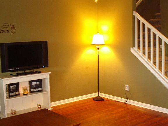 Very nice half-plex backing up to green belt. New flooring and paint. Alarm system. Very cute backyard with plumbing for a hot tub. Extra storage under the stairs in the garage.