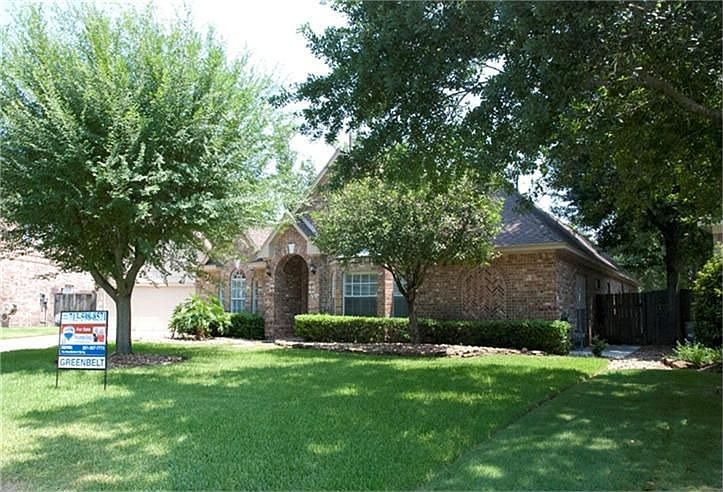 Immaculate & private single story Greenbelt (no rear neighbors!) home in sought after Champion Lake. Study with french doors & closet could be 4th bedroom. Large island kitchen with tons of counter & cabinet space. Gas cooktop. Open floor plan. High ceilings, neutral colors throughout. Breakfast bar. Two outdoor covered sitting/entertaining areas, including breezeway between house & oversized detached garage. Easy access to I-45 & Hardy Toll Road. Zoned to Woodlands schools & low taxes!