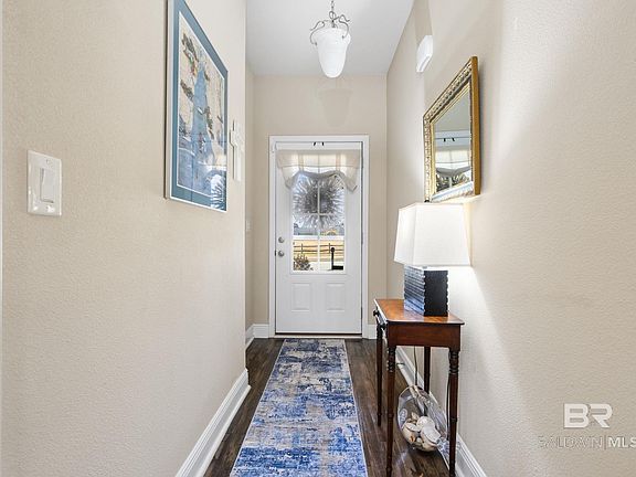 Welcome to the peaceful and conveniently situated Woodland Trace. This charming craftsman-style home boasts an open floor plan with a split-bedroom design, offering 3 bedrooms and 2 bathrooms. A formal foyer welcomes you into the spacious family and dining rooms, highlighted by LVP flooring and tray ceilings. The kitchen is equipped with stainless steel appliances, elegant espresso-stained cabinetry, and a pantry. The breakfast nook is bathed in natural light from numerous windows. The primary suite includes LVP flooring, a tray ceiling, and a large en-suite bathroom. Enjoy peaceful mornings with a cup of coffee on the expansive screened-in back porch. The double garage features a split-unit, providing versatile space that can be used as a home gym, office, or hobby area in addition to parking. Woodland Trace also offers a beautiful community park with a playground, basketball court, a large covered gazebo for gatherings, and a dog walking area. Gulf beaches are 30 minutes away, I-10 travel is 2 miles away for easy access to Daphne, Mobile, & Pensacola. Buyer to verify all information during due diligence.
