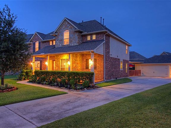 Beautiful Lennar ''Hyde Park/Topaz'' with lovely front and back covered porches, stone & stucco elevation. This great open floor plan features 4 bedrooms, 3.5 baths and true 3-car garage. Outstanding features include island kitchen w/granite & SS appliances, dramatic split stairway w/wrought-iron spindles, 2-story family room w/wall of windows, French Doors leading into study, spacious Master Bedroom w/room for sitting area. Backyard oasis features gorgeous rock waterfall swimming pool & spa.