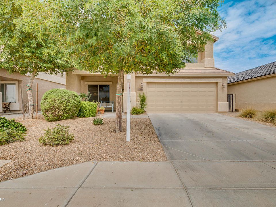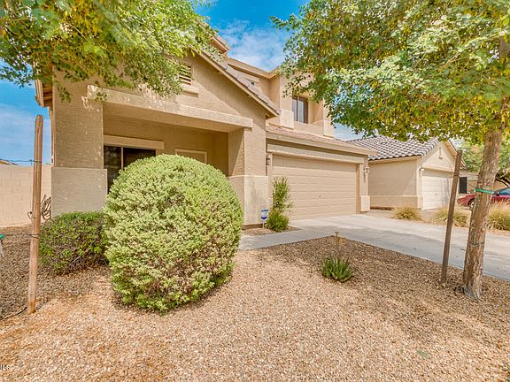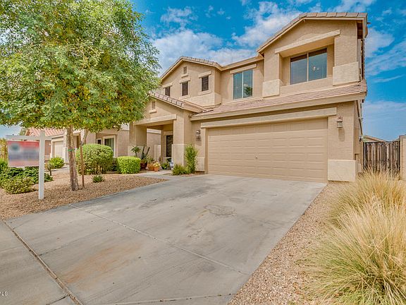 Come and see this amazing 5 bed, 3 bath property now for sale in Buckeye! This lavish home features desert front landscaping, 3 car tandem garage, vaulted ceilings, formal dining and living areas, a cozy loft, workshop, and elegant light fixtures throughout. The lovely kitchen is equipped with new sink, ample cabinet and counter space, a pantry, matching stainless steel appliances & a lovely island. Inside the fabulous master bedroom you will find a full bath with dual sinks, separate tub and shower, and a spacious walk-in closet. The beautiful backyard is comprised of grassy landscaping with a covered patio, paved seating area, and a refreshing pool perfect for the hot summer days! Don't miss the opportunity to see what this family home has to offer, schedule a showing today