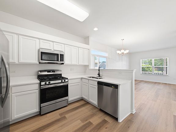 Welcome to this beautifully renovated ranch duplex, nestled in the highly sought-after Lakewood Crossing community-a pool and clubhouse neighborhood that offers a lifestyle of comfort and convenience. This 2-bedroom, 1.5-bathroom home has been meticulously updated, making it move-in ready for its next owners. Step inside to discover a bright and open floor plan that seamlessly connects the living, dining, and kitchen areas. The newly installed luxury vinyl plank flooring flows throughout the main living spaces, providing both style and durability. The spacious kitchen is a chef's delight, featuring updated white cabinetry, sleek quartz countertops, and brand-new stainless steel appliances. Whether you're hosting dinner parties or enjoying a quiet night in, this kitchen is sure to impress. The flexible living area offers plenty of space for both relaxation and entertaining, with easy access to the outdoors through a sliding glass door. Step outside to your private patio-perfect for morning coffee or evening meal. The backyard, which can be fenced, backs to common areas and a pond, offering a peaceful retreat. Both bedrooms are generously sized and fitted with plush new carpeting, providing a cozy atmosphere for rest and relaxation. The entire home has been freshly painted, ensuring a modern and clean aesthetic throughout. Enjoy the perks of this fantastic location, just a short walk from the neighborhood pool and clubhouse. Plus, with easy access to I-90, and nearby dining, shopping, and recreational activities, everything you need is within reach.
