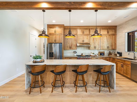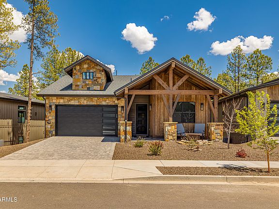No detail missed! Most upgraded home in all of Juniper Point, boasting three spacious bedrooms and two full bathrooms, with an open-concept layout ideal for both relaxing and entertaining. The contemporary gourmet kitchen features custom wood cabinetry with modern hardware, Calacatta countertops, stainless steel appliances, and a massive waterfall island, seamlessly flowing into the bright and airy living and dining areas. The primary suite serves as a private retreat, complete with a luxurious en suite bathroom, generous walk-in closet, electric window coverings, and access to exterior covered patio. Two additional bedrooms provide ample space for family, guests, or a home office. Set against the backdrop of Flagstaff's natural beauty, this home offers the best of mountain living, with the conveniences and efficiency of a brand new build. Don't miss this rare opportunity to own in Juniper Point!