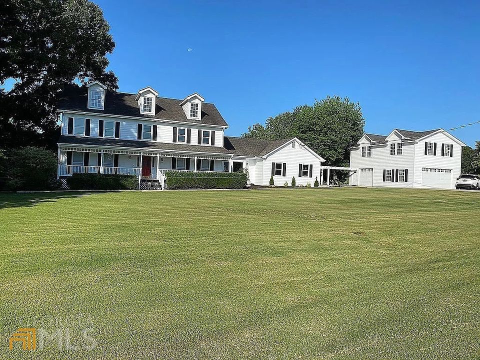 Come see this rare find in the Seckinger High School district that is now available to one lucky buyer! . Immediately from the rocking chair front porch you feel how amazing this home is. 4 bed/4.5 bath home with an owner suite on both the main and upper levels. The gorgeous chefs kitchen and the bathrooms are all beautifully updated. Be sure to step onto the back porch so you can enjoy the peaceful view. The large, finished basement is complete with living space, a bar area, a full bath, and great boat storage/work space. Your friends and family will love the gorgeous pool area and spacious backyard. Don't miss the additional detached space with a 3 car garage and potential upstairs suite. This home has new lighting, carpet, and paint throughout so move right in. Your horse will love the 2 stall barn in the back with additional storage space. Very convenient to I-85. NO HOA!