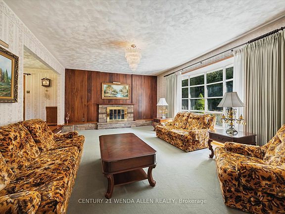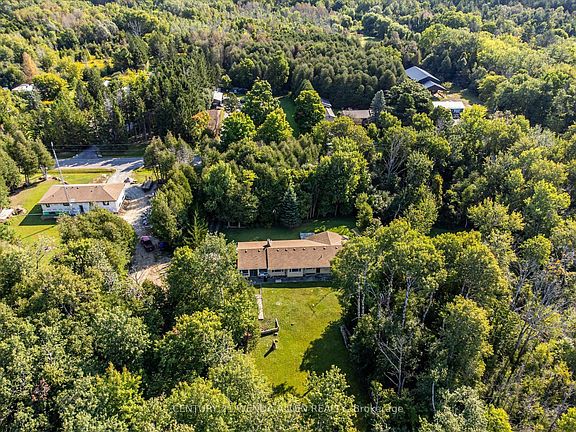 Nestled on a serene 10-acre property, this well laid-out 3-bedroom, 2-bathroom bungalow offers the perfect blend of urban and country living. Trees along the road allow for maximum privacy. The home features large formal living and dining rooms, perfect for entertaining, as well as a family room with wrap-around windows that flood the space with natural light. The family room has sliding doors to step outside and enjoy your expansive backyard, ideal for outdoor activities and relaxation. The eat-in kitchen is both functional and inviting. The spacious primary bedroom includes an 3-piece semi-ensuite bathroom, and both a walk-in closet and a standard closet. The unfinished basement will easily allow for a retrofit for a gas furnace and ducted central air, if desired. Some TLC will make this house your dream home!! This property offers the tranquility of country living while being conveniently located near shops, schools and the 401/407/418 for easy commuting. Don't miss the opportunity to make this peaceful retreat your own! Sold where-is, as-is condtion.