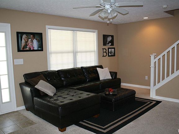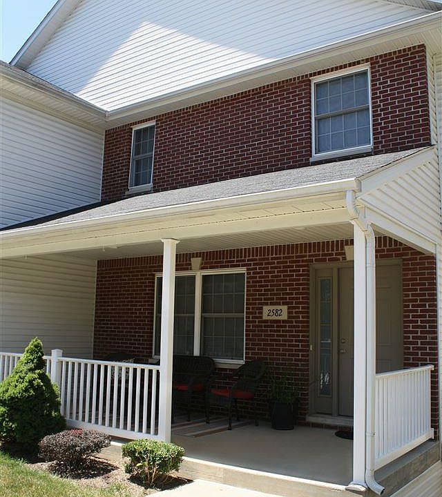Stand out among your neighbors in popular Summit Ridge! This Brick front town home comes with several custom upgrades. Open main level floor plan features a large covered front porch, custom light fixtures and window treatments, ceramic tile floors and generous cabinet and pantry space. Half bath features a custom oval cut mirror which adds character above the pedestal sink. Off the kitchen there is a wide deck overlooking the rear driveway. 2 Large bedrooms are located on the second floor as well as laundry room for ease of use. Each bedroom has en suite bath and walk in closet. The basement features a finished rec room as well as a finished storage area and access to the spacious garage. The one-car garage is much wider than most with separate entrance, storage under stairs and ample space for bikes, a deep freezer, shelving and/or hobbies.