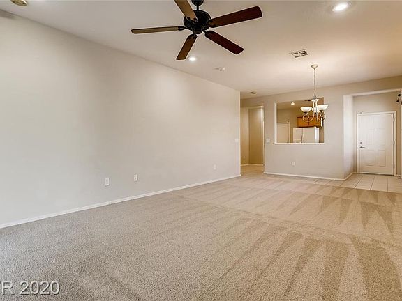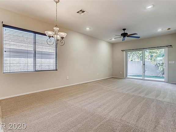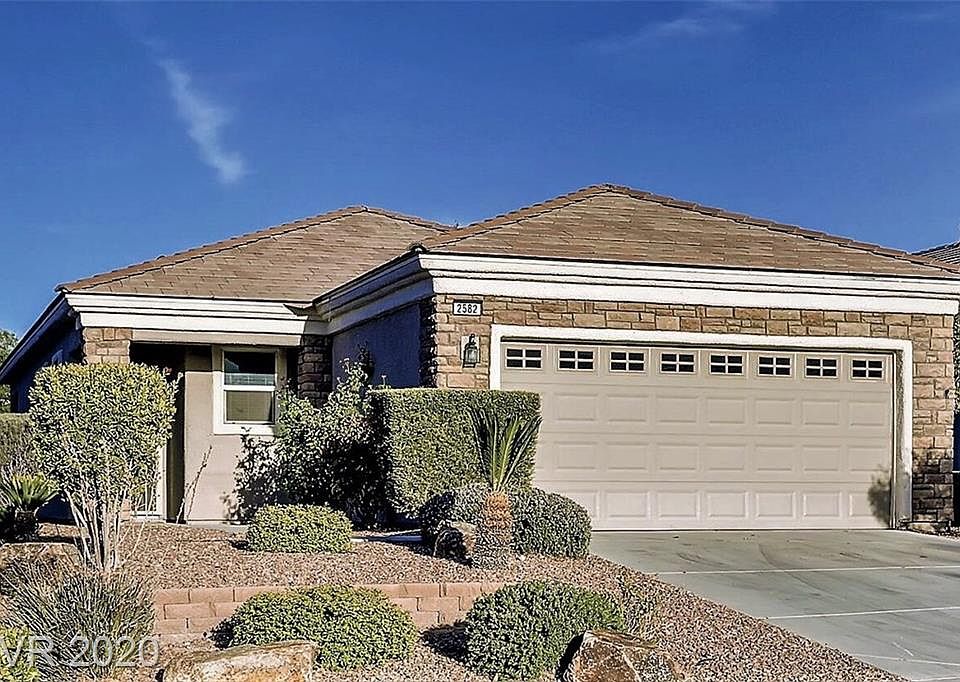 The popular three bedroom Clark model in Solera (55+ Community) gives you the flexibility to enjoy this home the way you choose. Great curb appeal - stone front, low maintenance landscaping front & back; Open & spacious great room with fan and new carpet; Kitchen - Corian counters & pantry. Separate Master suite with new carpet & walk-in closet. Master Bath - double sinks & walk-in shower; Second & Third bedrooms - new carpets. Covered patio peaceful backyard. NO SID/LID