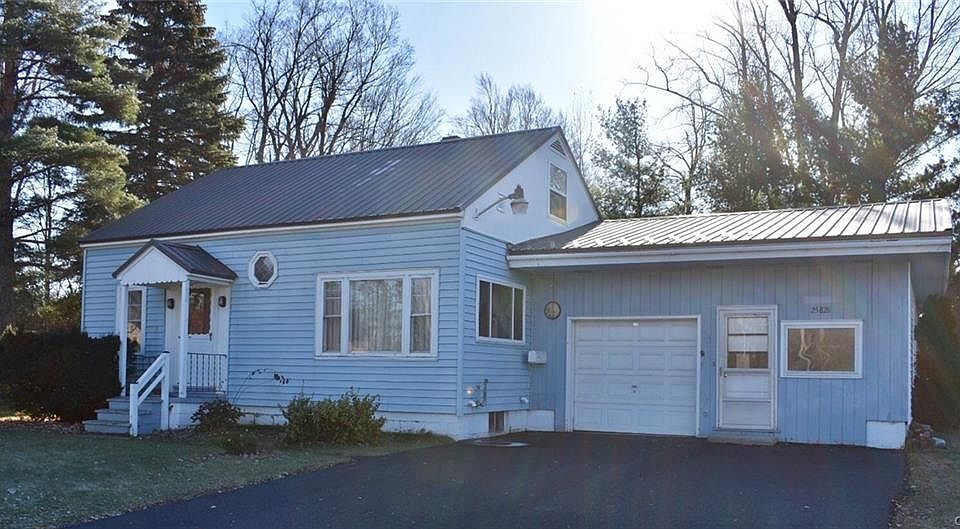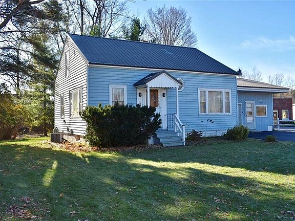 This quaint cape cod home has a short commute to Fort Drum or Watertown and is priced to sell! This Estate sale is move-in ready, just needs your cosmetic updates! Beautiful hardwood floors throughout (some under the carpet), newer metal roof, vinyl siding, central air and a newly paved driveway! There is an enclosed porch/patio that overlooks the private, treed lot. Currently there is a 1 stall attached garage with another stall that was converted to a home business area with it's own separate entrance. In the full basement, there is space for a family room or man-cave with it's own bar! A great home at a very affordable price!