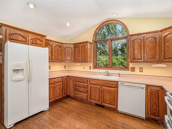 Nestled on 4.82 acres is where you will find this 4BR/3BA walkout multi-level home. Relaxing on 1 of 2 large decks you will enjoy gazing at the mature shelterbelt made up of 70 different varieties of trees. If that's not enough already it comes with an attached and heated 2 stall finished garage, a 54x42 heated attached garage as well as a large covered cement pad that's perfect for a camper. The home has over 2,100 finished sq. ft. starting with the main level it features a large foyer, vaulted and open kitchen and dining area with wood floors, breakfast bar and a French door to the deck. The vaulted upper level hosts a cozy living room with a fireplace and French door to the deck, full bath and 2 bedrooms 1 of which is the huge master with its own WIC, full bath and a French door to a separate deck. The walkout lower level won't disappoint with its open family room, 2 additional bedrooms and full bath. The basement is completely unfinished for you to create your own space.