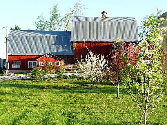 6 BR, 2.1 Bath on 529 acres. Woodstoves, woodburning fireplace in BR. Office with beautiful wood detail, attic, skylight in stairway. Barn, garage/ workshop. Enclosed front porch recently redone wood detail plus wrap around porch which is 10` from house to front of porch. Flowering crab, apple, plum, currents, shrubs, roses, flower bulbs. House sits back from the road. Great spot for horses or Hobby Farm. Part of house built in 1860, large addition 1975. Hardwood floors throughout. Heating system and roof about 10 yrs old. Most of house repainted throughout inside. Outside there are multiple pastures. Bring your horses or start your new farm additional property available as well across street and possibly can be broke. Up into smaller pieces of acreage.