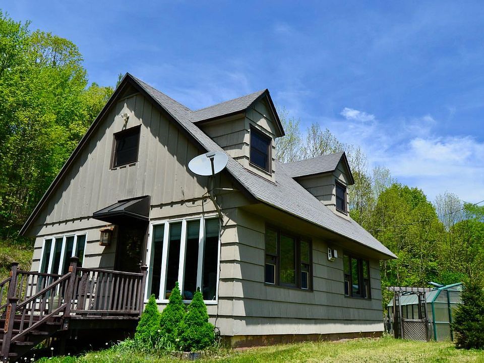 GORGEOUS SWEEPING MOUNTAIN VIEWS from every room in the house! From the master bed! From the kitchen sink! The living room, the garden, the private covered master balcony everywhere. This beautiful home is perched along the valley overlooking HIGHLAND CATTLE ROAMING IN THE FIELD BELOW. You can HIKE YOUR OWN FORESTED HILLSIDE. Relax in the CLAW FOOT SOAKING TUB IN THE MASTER EN SUITE BATH! RENOVATED KITCHEN, RADIANT FLOOR MASTER SUITE, STONE FIREPLACE, PANORAMIC VIEWS FROM THE OPEN FLOOR PLAN LIVING/DINING/OFFICE/DEN! This isn't one to be missed. BRING FIDO! for the fenced-in garden. Pluck fresh herbs from your greenhouse right off the kitchen. Live the Catskills dream! CONVENIENT TO BELLEAYRE for skiing!