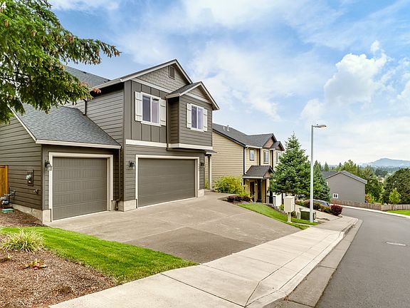 Immaculate home tucked away in desirable new neighborhood! Tons of natural light in this hard to find four bedroom home. Lovely soaring entry! Easy care vinyl plank flooring. Great room style living with high ceilings & beautifully tiled gas fireplace! Kitchen has quartz countertops, pantry, gas range & island with eating bar. Upstairs has premium carpeting throughout! Large Primary suite with trey ceilings, walk-in closet & attached bath with double vanity. Three additional generous bedrooms. Upstairs utility. Backyard is fully fenced with extended patio, sprinklers & easy care landscaping. Large finished three car garage! South Eugene schools and easy access to U of O and downtown.