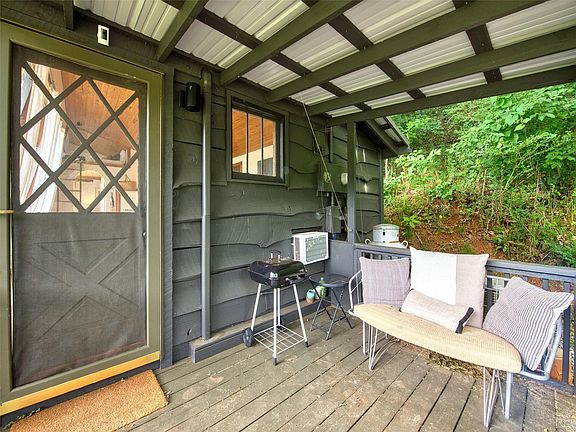 Custom cottage nestled alongside the beautiful Tuckasegee River in Webster, NC. Located in the Smoky Mountains just minutes from historic Downtown Sylva and Dillsboro. Huge, level front yard with fire pit and river access. This unique architectural home has full panoramic windows providing lots of sunlight and a view of the river! Great tubing and fishing just out of your front door! Home features 1bed/1bath, BONUS ROOM, small loft sleeping area, and a covered porch. Lots of updates including new metal roof, new mini-split, new window a/c, new exterior paint, new fire pit, new refrigerator, and added wood rails on porch (updates 2021). Home includes an additional 143 sq ft not counted in HLA (see attached measurements). Great place to enjoy the mountains with easy access! Great location! Additional one acre lot listed for sale. Waiting on clarification from county to determine if this house has a 1 or 2 bedroom septic. (see attachment). BEST OFFERS DUE TUES 2/28/23 BY 9 AM.