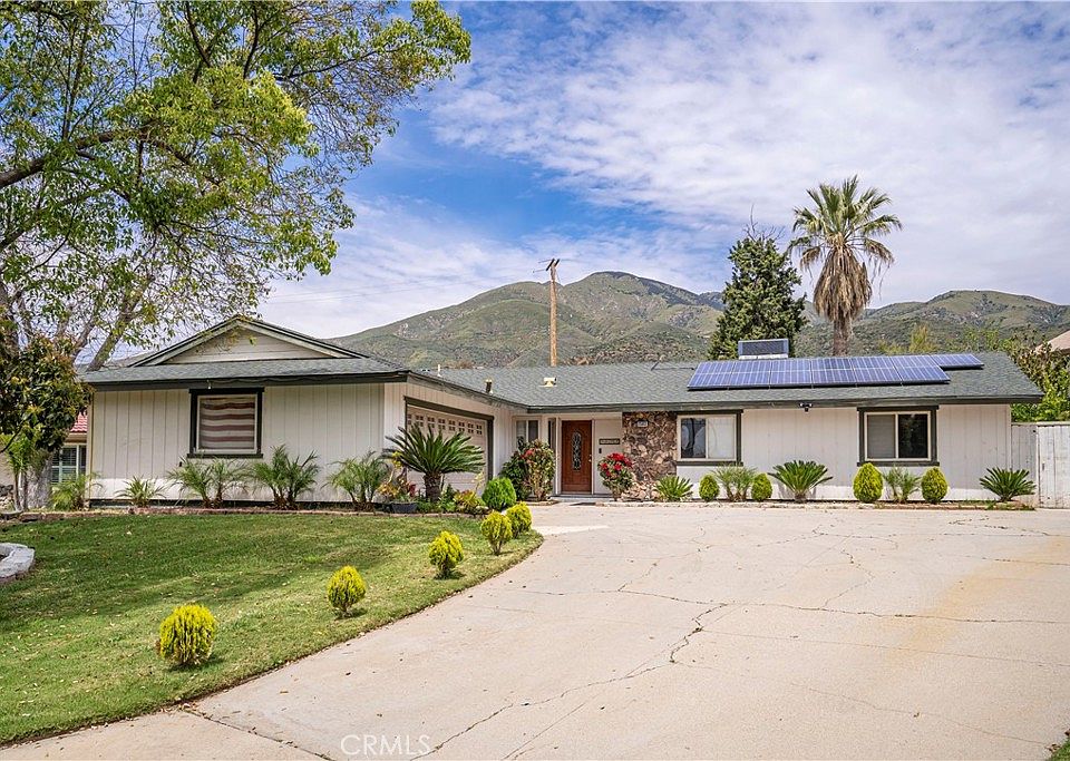 The primary bedroom offers his and her closets and a 3/4 bathroom for added convenience. Enjoy the convenience of an individual laundry room inside. The 2-car attached garage provides direct access to the home, with additional RV parking available. Outside, the backyard is a haven with lots of fruit trees and a concrete patio, perfect for relaxing or entertaining. Buyer to assume the leased solar panels.