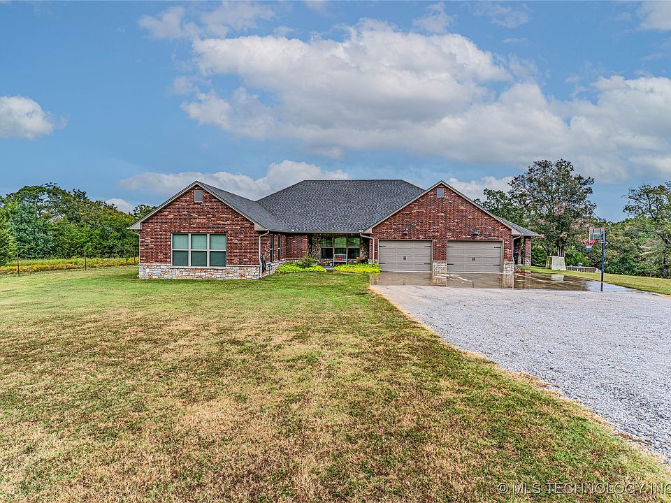 Gorgeous custom-built home on 10 acres conveniently located between Tulsa and Oklahoma City on a paved road. Built in 2016, this 4-bedroom, 2-bath home features an open floor plan with vaulted ceilings, a spacious living area, and a large kitchen island with an oversized refrigerator. The master suite includes a jetted tub and separate shower. Additional amenities include a 2-car garage, above-ground pool, hot tub, and storm shelter. A 30x60 insulated shop offers a 15x30 finished room with mini split—ideal for an office or hobby space—while the remaining shop area is heated and provides ample workspace or storage.