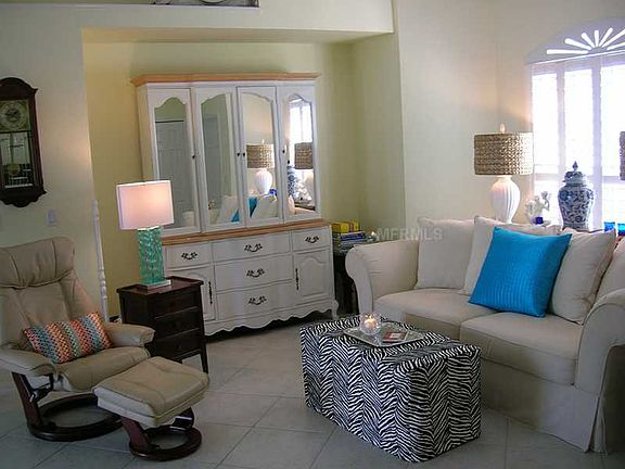 This beautiful Florida home invites you in as you walk past the meticulously landscaped front yard with lush tropical plants and trees, landscape curbing and on to the front entry with brick pavers. As you enter the home, you will immediately notice the attention to detail and the unique architectural features including soaring vaulted and tray ceilings, lots of plant shelves for your collectibles, crown moulding, recessed wall in living room for entertainment center, bump out walls for extra living space, and transom windows. Other features and amenities include diagonal ceramic tile, laminate flooring, marble vanities in bathrooms, recessed lighting, decorator light fixtures, custom plantation shutters throughout, pocket doors, and bright color accent walls. Lots of storage with large storage closets across one entire wall in garage, cabinets and pantry in laundry room, walk-in closet in master suite, and extra linen and storage closets throughout the home. You will want to spend most of your time on the extended screened lanai overlooking the heated pool and gazebo. Private setting with canal/greenbelt behind the home which attracts the beautiful water fowl and birds unique to our area. Your home awaits you and is ready for you to move right in. Brokered And Advertised By: RE/MAX ANCHOR OF MARINA PARK Listing Agent: ROBBIE SIFRIT