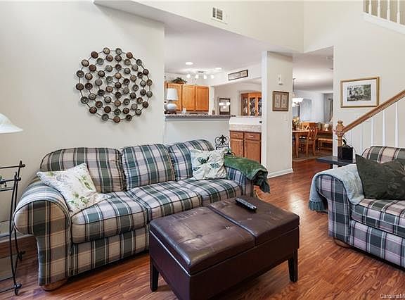 Welcome home! This charming and inviting 3 bedroom townhome is waiting for you! Beautiful hardwood floors greet you as you enter this lovely home welcoming you to the living room that flows perfectly to the dining room! Open and airy, the soaring two story great room features a beautiful fireplace and oversized windows that offer lots of natural light and leads to the spacious kitchen. The kitchen features recessed lighting, stunning granite countertops that have tons of space and large cabinets as well as a breakfast bar! Spacious Master suite with ceiling fan, cathedral ceiling, and stunning custom closet with great built in shelving. Nice size private master bath with dual sinks. Large secondary rooms also include a ceiling fan and second full bath is also found upstairs. Private backyard is perfect for entertaining! Great location- close to shopping, dining and easy access to 85.