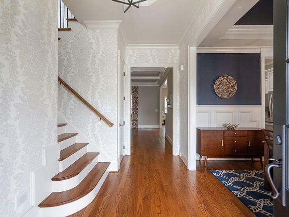 Welcome to your dream custom home in the coveted Stratford at Abbington. This exquisite 5-bedroom, 4.5 bath estate home spans three spacious floors and is set on a generous .44-acre lot. The inviting, covered front porch beckons you inside, where modern elegance meets comfortable living. Main Floor Highlights: Gorgeous and real hardwoods throughout most of the main level. The primary bedroom is a serene retreat, featuring a spa-like bath with a large walk-in shower and a custom closet designed for ultimate organization. The heart of the home is the gourmet kitchen, boasting granite countertops a six burner gas stove and stainless steel appliances, perfect for culinary enthusiasts. The dining area is loaded with custom wood trim and a decorative tres ceiling while the family room has a stunning, coffered ceiling. Upper Floors: Ascend to the second floor, where you'll find 3 additional bedrooms, with one being a lovely suite with its own private bath; ideal for visitors. This floor has a versatile loft space and an enormous bonus room that can serve as a game room, playroom or home theater. The third floor has a guest room/5th bedroom with an additional full private bath. Outdoor Oasis: Step outside to your private backyard paradise! The screened porch and beautiful stone patio with a cozy fire pit create the perfect setting for entertaining. Meticulously landscaped, flat, private and expansive fenced backyard, complete with a play set and a garden for the green-thumbed enthusiast. Additional Features: With a three-car garage, ample storage and stylish finishes throughout, this home offers both luxury and practicality. Don't miss the chance to make this stunning estate your forever home! Schedule a tour today and experience all this property has to offer! Perfect location to dining, shopping & entertainment in the new Sweetwater Town Center, just minutes from Beaver Creek Commons, I-540, HIghway 64, RTP, the airport and historic downtown Apex. Community swimming pool, tennis courts and playground included in the HOA.