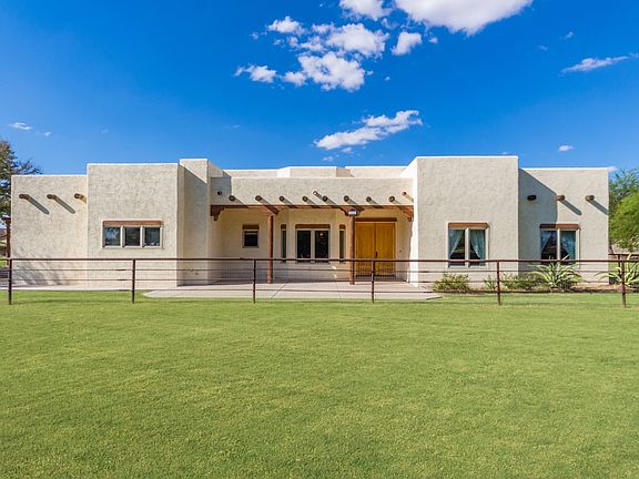 Back on market, buyer unable to perform. Outstanding horse property, 2 IRRIGATED acres w/ a 1988 sqft home w/ 2 car garage PLUS a 2 bedroom, 1.5 bath GUEST HOUSE w/ 2 CAR GARAGE/WORKSHOP (heated and cooled). No HOA, 2 large PASTURES, one is 98x240 (could be an awesome ARENA) & the other is 180x60. only $160/sqft Home has 3 Bedrooms & 2.5 baths plus fireplace, peeled post beams. 10 ft ceiling and Saltillo tile throughout. Separate dining and den and office. Covered front porch & back patio out to separate fenced back yard where there is plenty of room for a pool. Energy Saving Integra-Block construction w/ foam/fiberglass insulation. Both A/C systems updated. Covered horse stalls w/ water, pastures that are cross fenced steel pipe & no climb. Plenty of trees for tons of shade
