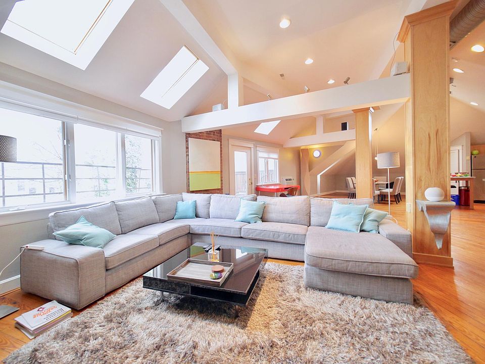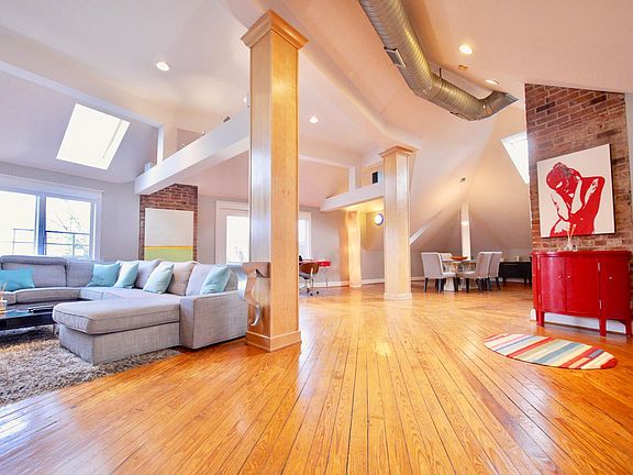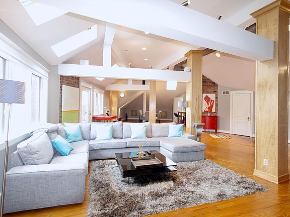Spectacular Loft! Beautiful 2 bdrm, 2 bath modern loft. Elegant living in Hyde Park. Third (top) floor of a statuesque Hyde Park Building. Designed by Architect Thomas Arnold -- -- Available June 1 or July 1 2020 -- Can be furnished as shown at no extra charge. -- SPACIOUS & OPEN -- Flowing, open 2,400 sqft layout. -- Large private bedrooms with 9ft entry doors. -- Lots of space to use as office area, etc. -- Huge open kitchen and dining area. -- Huge open living room. -- PREMIER LOCATION -- 3-4 blocks walk to Hyde Park Square and over 200 one-of-a-kind shops, restaurants, taverns, coffee shops. -- Beautiful park directly across the street. -- LUXURY FEATURES -- Up in the trees! Huge 300 sq.ft. private deck. -- Built-in, reserved garage space with remote opener. -- Plus ample on street parking. --Audio speakers wired throughout loft including outdoor deck. -- Central Air Conditioning. -- Free laundry facilities in loft. -- Spacious walk-in bedroom closets plus coat closet -- Spacious walk-in, shelved kitchen storage pantry. -- Door buzzer/intercom system. -- Additional lockable, private storage in basement. -- APPEALING UPSCALE FINISHES -- Stainless Steel Appliances -- Concrete counter tops. -- Gorgeous outside light - Beautiful skylights, lots of windows. -- Upscale light fixtures with dimmers. -- 13 foot vaulted ceilings. -- Hardwood floors throughout -- Elegant maple structural columns -- PUBLICITY -- Regularly featured in the Cincinnati Home & garden Show. -- Photographed by Metropolitan Home and Better Homes & Gardens. Free electricity, water, trash. Short-term lease available. Unit can be fully furnished at no charge.