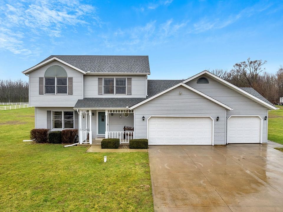 PEACEFUL SETTING - This one is sure to check a ton of the boxes on your wish list!! Beautiful well maintained 4 bedroom 2 1/2 bath home, located in CRICHFIELD school district on 2.44 acres. Perfect setting with a quaint front covered porch welcoming you home with a cozy foyer as you enter. The main level features living room, dining room, family room, kitchen, 1/2 bath & main floor laundry. Sliders off kitchen lead out overlooking beautiful, private backyard with above ground swimming pool! Upstairs primary bedroom with en-suite. THREE additional bedrooms, & full bath complete the upper level. Basement is unfinished=blank slate! LOTS of storage throughout this home. 3 Car attached garage.Roof 2015, AC 2021, Water Heater 2023