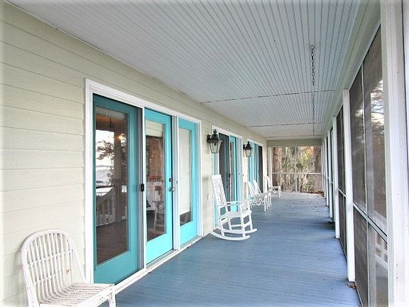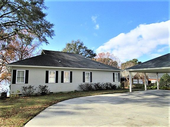 Waterfront custom built home on Lake Marion has "Big Water" views with sandy beaches is located on popular Princess Pond Road. Three-bedroom, two bath, open floor plan has hardwood floors throughout. Kitchen has granite countertops, stainless appliances, gas range and oven. The home features crown molding, plantation blinds, ceiling fans, recessed lights, laundry area, all appliances convey with home. Master bedroom has a walk in closet and private bath. French doors lead to a covered porch so you can enjoy the beautiful sunsets. Extra storage areas are underneath the house. A two-car carport and a metal building measure 30' x 40' with 8' doors, is perfect for boat storage or workshop. The left end of the metal building is set up as a guest suite with bath and kitchenette. (Cont'd)