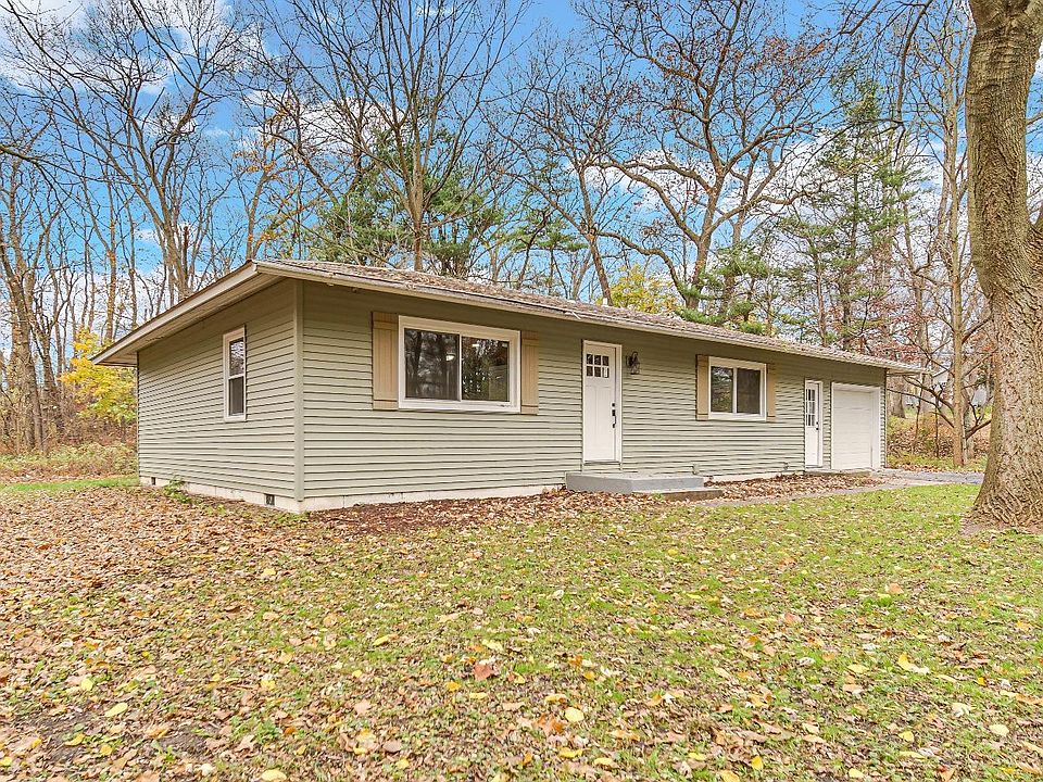 COMPLETELY RENOVATED, 3Bdrm/2Bth Ranch w/ Attchd Garage situated on ONE ACRE WOODED LOT close to All Major Convenience & Hwy/Toll Rd Access! BRAND NEW Siding, Windows, & Roof, WELCOME YOU into Spacious Living Rm boasting Beautifully Refinished HARDWOOD FLOORING and Recessed Lighting. Modern Slate Paint Palette pops against Upgraded, White Trim/Drs. REMODELED Kitchen is highlighted by Extra-Tall, Slow-close Cabinetry w/ Brushed Gold Hardware, Subway Tile Bcksplsh. & BRAND NEW STAINLESS APPLIANCES. HW Flrng continues down Bdrm Hallway leading to 3Bdrms including MASTER SUITE w/ Private Bth featuring W-I Shower w/ SUBWAY TILE SURROUND. Hallway Bth also features SLEEK Finishes including White Vanity, Chic Lighting, & Tile Shower Surround w/ Recessed Niche. Attached Garage has BRAND NEW Opener and Overhead Door. NEW Blown-in Insulation and NEW HVAC to help keep YOUR HEATING COSTS LOW THIS WINTER. Unique Opportunity for One-Level Living situated on PEACEFUL, Wooded Acreage w/ City Utilities!