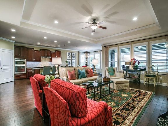 Amazing Dunwoody Way Plan on #11 tee box with upgrades galore including crown molding and hardwoods throughout, plantation shutters, pull-out drawers and many more! Gourmet island kitchen features granite, walk-in pantry, tumbled stone backsplash & built-in refrigerator. Family room is enhanced with trey ceiling and triple windows overlooking the lovely pergola patio with outdoor kitchen. Master bedroom offers trey ceiling, granite counters, oversized shower, and walk-in closets with built-in dresser and island with shelves. Guest suite boasts private bathroom with granite counters. French doors lead to the spacious study. Large utility room with sink & cabinets for storage. Tandem garage with epoxy floor.