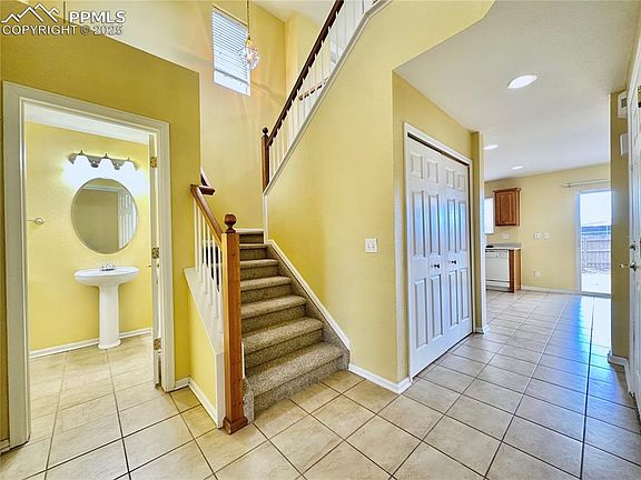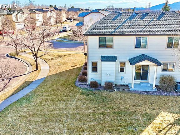 Updated & refinished Sierra Springs Home w/brand-new carpet & appliances! This turn-key home abuts a cul-de-sac w/a large rear & huge side yard; backs up to a school & open space. Located in a well-maintained HOA neighborhood w/community park; minutes to Ft. Carson, Peterson, Academy Blvd, shopping & schools. Spacious master suite features a 5-piece bath; open vaulted entry & banisters usher you upstairs to an open flexible space w/gorgeous built-in bookshelves could also function as a light/bright office or play-space. Main level boasts an open-concept living area w/cozy gas fireplace & north-facing rear porch. Central A/C ensures comfort year-round. Don’t miss this opportunity—schedule your showing today!