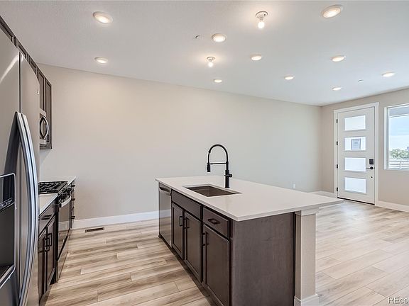 **February 2025 Move-in ** This brand-new, 3-story, Townhome by Brookfield Residential @ Midtown offers 3 bedrooms, 4 bathrooms and a huge Rec Room with Wet Bar and sliding glass doors that open onto a ROOFTOP DECK. Plus, having access to the adjacent 20-acre park and trails is a fantastic perk for nature lovers. The open-concept layout with high ceilings creates a spacious feel, and the kitchen with its large island and quartz countertops is sure to be a focal point for gatherings. The inclusion of energy-efficient features like the high-efficiency furnace and tankless water heater is not only environmentally friendly but also helps save on utility costs. The option to select interior finishes allows for personalization, making the townhome truly feel like home. And with its proximity to major highways like I-76, Boulder Turnpike, and I-25, as well as being just 5 miles from Downtown Denver, it offers both accessibility and the charm of suburban living. Overall, this Horizon Townhome presents a compelling opportunity for anyone seeking a blend of comfort, convenience, and modern living in a vibrant community surrounded by nature and urban amenities. Stop by to tour the model home of this exact plan today! **Photos & virtual tour are a model home, actual colors and selections may vary**
