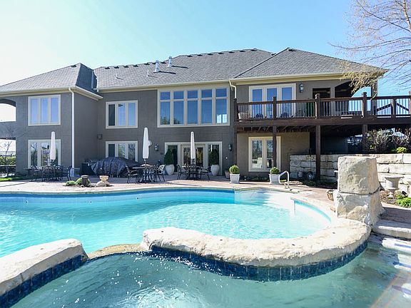 Stunning Custom Built Reverse 1.5 Story in highly sought after Western Shawnee. A chef's dream kitchen w/ SS Jennair gas range, double oven, Full size freezer and refrigerator, dishwasher. Large Kitchen Island, Prep kitchen and HUGE pantry. Open Layout for easy entertaining indoors, watching a movie in the theater, playing pool in the rec room or enjoy the sunny days by the Saltwater Pool wrapped with patio and extensive landscaping. Not a detail was missed when designing and decorating. Lower level offers 2 Additional Bedrooms, 2 Baths, 2 Flex rooms, Recreation room and Full Wet Bar with Refrigerator, dishwasher, microwave and double wine fridges. Built- Ins throughout. Hardwoods in Kitchen, breakfast, prep, foyer, pantry and mudroom. Huge Master suite with Martini Deck. Welcome Home.