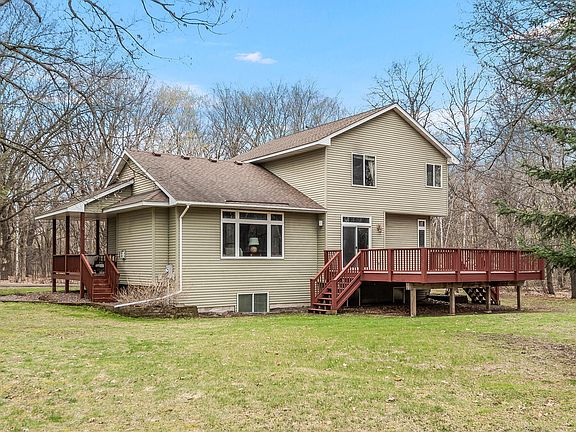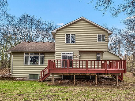 No need to look any further! Beautiful well-kept Mod 2 story home tucked away in 2.5 wooded acres! Home features solid wood cabinets, solid 6 panel doors, main floor bedroom/bath, vaulted ceilings, built in entertainment center, central vac, and a gas fireplace. Surround sound in living room, porch, deck, and garage! Lower level is roughed in for a 4th bath and is awaiting your ideas to finish. Let’s not forget the 4-car oversized garage, insulated/heated, hot/cold-water, pull-down storage, and floor drains. Huge driveway with extra parking and turn around – cul de sac location. This property truly is your own private retreat!
