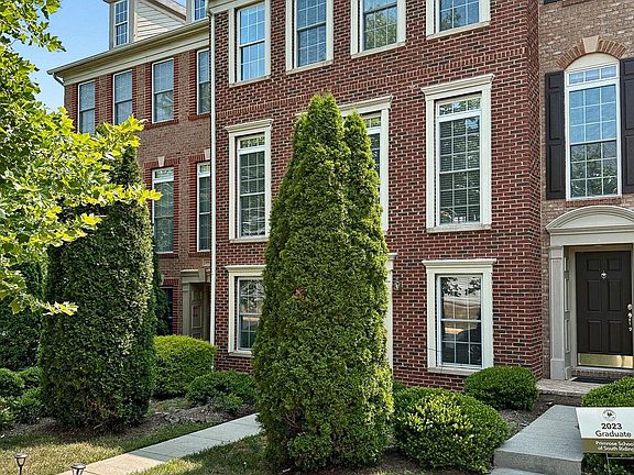 Beautiful brick front townhome in highly sought after South Village boasting over 2,400 square feet, 4 bedrooms, 3.5 bathrooms and a two-car garage! Upon entering the main level you will notice new luxury vinyl plank flooring, a recreation area, a spacious main level bedroom, a full bathroom, ample storage and access to the garage. The middle level features luxury vinyl plank flooring in the kitchen, dining and office areas, lovely trim and moldings and a desirable open floor plan with tons of natural light. The kitchen is nicely appointed with tons of cabinetry, stainless steel appliances, granite counters, tile backsplash, recessed lighting and a pantry. The dining area is great for hosting many to gather around a large dining table and glass doors leading to your balcony. Custom built-ins with smart lighting just off the kitchen is a perfect home office space or could be used as a bar, coffee bar or display area. A very spacious family room and a powder room finish this level. The upper level features a primary suite with a vaulted ceiling, private balcony, large walk-in closet and en-suite with soaking tub, stand up shower, dual vanity and tile floors. Two other bedrooms, a full bathroom and a convenient upper level laundry complete the upper level. This home is located on a quiet cul-de-sac type, non thru street. South Village is a great community featuring an outdoor private community pool, playgrounds, tennis courts, walking trails and more. It is conveniently located near the best shopping, grocery stores, restaurants, specialty stores and major commuter routes. Welcome Home! *Recent Updates: New Upper and Lower HVAC- 2019, New Hot Water Heater- 2018 New Garbage Disposal- 2023, New Dishwasher- 2018, , New Hardwood Installed Basement level- 2023, New Refrigerator and Stove- within last 5 years*