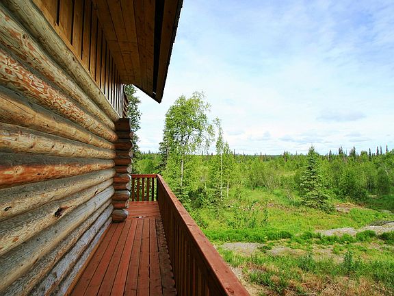 Built to the nines with steel reinforced posts for the 3/4 wraparound deck, ICF foundation and amazing views of Denali & the Alaska range. Enjoy your coffee on either deck looking out at that view. Hand hewn spruce logs with Swedish cope construction on main story with upper and lower levels for bedrooms, plus additional living space.