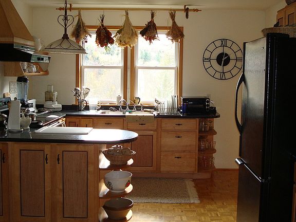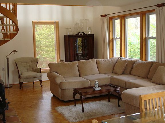 Country Contemporary Cape Charming contemporary cape located on a quiet country dead end road. This passive solar home was designed and built by the owner. Pride of ownership shows in the beautiful woodwork and bright open design. Home is heated by woodstoves surrounded by mexican tile that help capture and hold the heat. Also includes a lovely solarium and large woodshed and outbuilding.