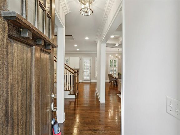 Meticulously cared for and updated Drew Valley/Ashford Park Elem. colonial with custom wood trim and hardwood floors throughout the main and all new hardwood floors on the 2nd floor bedrooms. The first floor features high ceilings and a living room with a custom coffered ceiling, canned lights, and a large fireplace. Separate dining room plus dinette area is a modern kitchen with lots of custom cabinets, granite counter-tops, a kitchen island, stainless steel appliances, plus a walk-in pantry! The dinette area leads to a rear yard deck overlooking a partially wooded area for privacy, plus a grassy, stockade-fenced-in area great for pets. The first-floor bedroom has easy access to a full bath and makes a great room or office. The 2nd floor features 4 nice size bedrooms, all of which have access to a full bathroom! The luxury bedroom suite features a tray ceiling, a huge walk-in closet with custom shelving, a luxury bath with a raised double vanity, a separate shower, and a tub in a vaulted ceiling bathroom. The 2nd floor also features a laundry room with lots of workspace. The walk-out finished lower level is great for media and a game/rec room with a wet bar with ice maker and wine refrig., It walks out to the rear yard, covered by a paver stone patio under the deck for plenty of shade. A must-see!