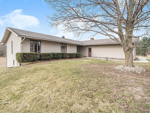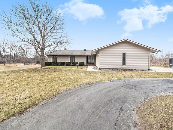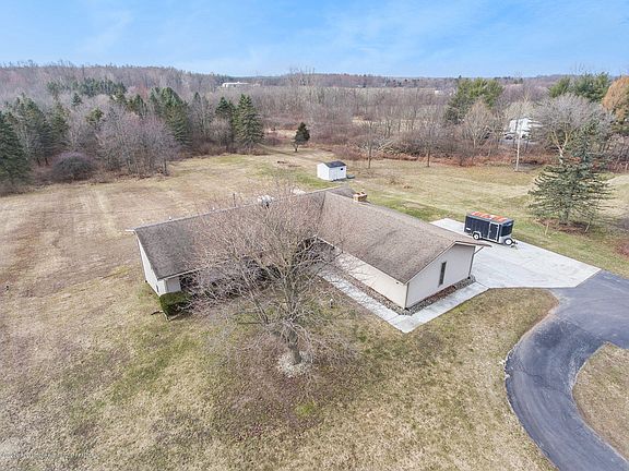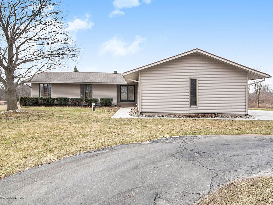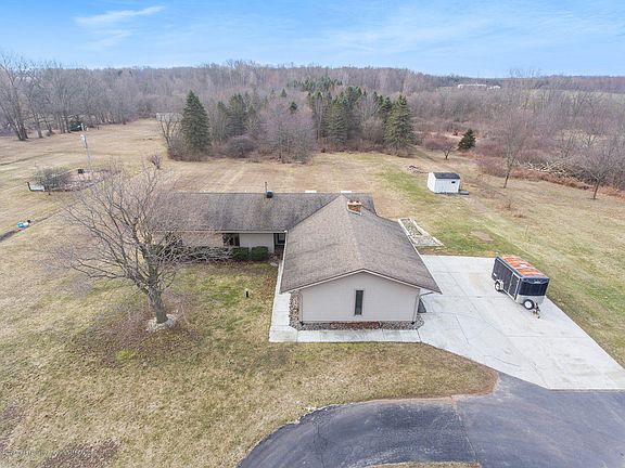 Welcome to 2585 Holt Rd! This 3 bed, 3 full bath, ranch-style home boasts nearly 1600 square feet! NEW PAINT AND FIXTURES THROUGHOUT! Main level features an open foyer w/ hanging chandelier, flanked by the large living room w/ CATHEDRAL CEILINGS, walkout access to back deck, and gas fireplace w/ character-enriched brick chimney! Eat-in kitchen with stunning views of the back yard! 2 bedrooms on this level, including the master suite! WALKOUT BASEMENT is the perfect space for entertaining! Tons of storage space, an extra bedroom, and patio access! 5 ACRE LOT WITH WOODS! Top it off w/ low maintenance VINYL SIDING, circle driveway, oversized 2 car garage, and a shed! Very peaceful setting. Move right in!