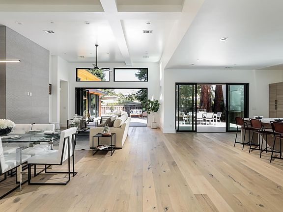 High-end modern new construction benefits from an oversized lot of over 10,000sf. Ideal one level living in a prime mid-town location, with blocks-away convenience to Midtown Shopping Center. Vaulted ceilings and sleek contemporary lines with an all-glass wine cellar as a focal point. The kitchen is a chefs dream with extensive counter and island space along with a suite of Thermador appliances. Wonderfully flexible options for living and dining. Stacking glass doors line the rear of the home and open to a vast deck and perimeter gardens. There are 6 bedrooms, four bedrooms have an en suite bath, highlighted by the luxury bath in the primary suite. Brand-new construction in an amazing location and access to acclaimed Palo Alto schools this truly is an excellent option for Palo Alto living.