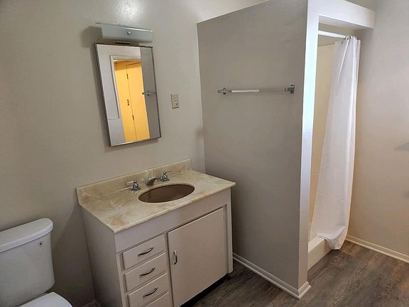 Freshly painted and new flooring. 1 bedroom, 1 bath, with inside laundry area. Off street parking, with direct entrance from parking space to unit. Ground floor unit. Tenant pays all utilities. No Smoking, No Pets. Assigned parking at rear of unit, 1 car only.