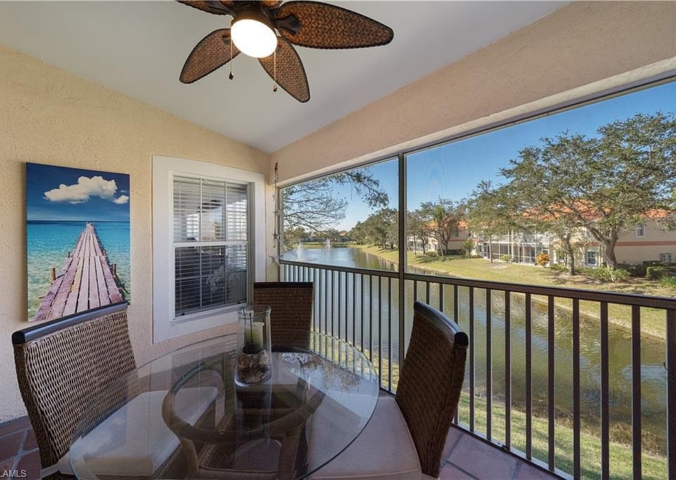 C.15720 - Highly desired & LOWEST PRICED 2nd Floor END UNIT 2 bedroom plus Den, 2 bath condo with relaxing lake and fountain VIEWS! NEW ROOF Dec. 2018! Notable features include stainless appliances, updated flooring, soaring high ceilings, assigned covered parking, and laundry in residence. Pipers Grove is located in super popular and convenient North Naples, with shopping and dining right outside the gate. Walk to Publix! Vanderbilt Beach is just a three mile drive down the road, and the Public Library and North Collier Government Center are even closer on Orange Blossom Drive. Enjoy this gated, active and friendly community with lots of amenities including three swimming pools, plus a lap pool and whirlpool spa, clubhouse, har-tru tennis courts, bocce and over two miles of walking trails. Full renovation to the main pool completed with no assessment to the homeowners. New picture frame screen cage with beautiful lake views. MUST SEE!