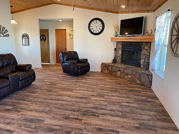 This brick home is located in the South Shore Village area, on 1.180 acres. It has three nice size bedrooms all with walk-in closets, and two full baths. The master bathroom has a large jacuzzi tub. The open floor plan has a beautiful knotty pine vaulted ceiling in the living/dining/kitchen. In the living room there is a stone fireplace which keeps the winter months nice and cozy. Refrigerated air and heat unit makes this all electric home very energy efficient. Beautiful wood cabinets wrap all around the kitchen with plenty of storage, lots of countertop space and an island. The property around the house has been landscaped with nice trees, and bushes. After a nice day on the lake enjoy the covered concrete patio. In the backyard there is a metal privacy fence along with a 20x20 basketball court. There is a nice circular driveway sprinkler system and plenty of room for other buildings, storage, etc.