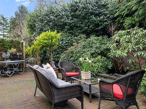 Downsizing never looked so good. Sophisticated level-entry townhouse with seaside-cottage feel in exceptional location. The exclusive Glen Undine complex is steps from Cadboro Bay Village & the beloved Cadboro-Gyro park and beach. Thoughtfully designed layout invites indoor/outdoor entertaining & relaxation, flow-through living/dining, feature gas fireplace, large windows, built-in storage & level access to utterly charming SW-facing patio garden. Sunny, remodelled kitchen has quartz counters, generous fitted drawers & cupboards, instant hot water faucet & Fisher & Paykel appliances; sep laundry room with sink; spacious bedroom with walk-in closet and ensuite. Upstairs the easy living continues: primary bedroom with walk-in closet & lush treetop views; gorgeous spa bathroom, bedroom/office & flex room. Very private end unit, enclosed garage & storage plus bonus outdoor parking spot. Updates by current owner include retractable window screens, new hot-water heater & garden enhancements.