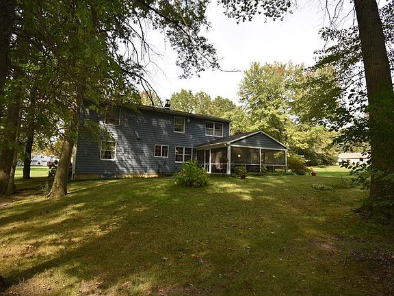 Beautiful custom built 2 story home sits back off the road on a wooded lot that's over 2 acres. The large covered porch and double front doors create a grand entrance. Foyer with a coat closet and open staircase flows into the formal living and dining rooms with plenty of natural light. Two charming built in corner china cabinets; crown molding and chair rail beautify the dining room. Eat in kitchen with large island showcases the hanging display rack with lighting. Sizable windows to view the private back wooded lot. The half bath is located conveniently for you and your guest. Crown molding throughout the kitchen compliments the wooden ceiling beams in the sunken open family room. The beautiful stone wood burning fireplace boast the gorgeous custom built solid wood mantel. 12 foot glass sliding doors open to the amazing screened in back patio. The 2nd floor huge master suite has full bath, walk in closet, and built in makeup/personal care vanity. The next bedroom is just as large with lots of natural light and double closets. A full bath, laundry chute and 2 additional bedrooms complete the upper level. The back wooded lot has a 27wide x 75long x 15height pole barn with 2 horse stalls. There is an attached 2 car garage with paved turn around driveway. Tons of living space in this amazing home. Schedule your viewing today.
