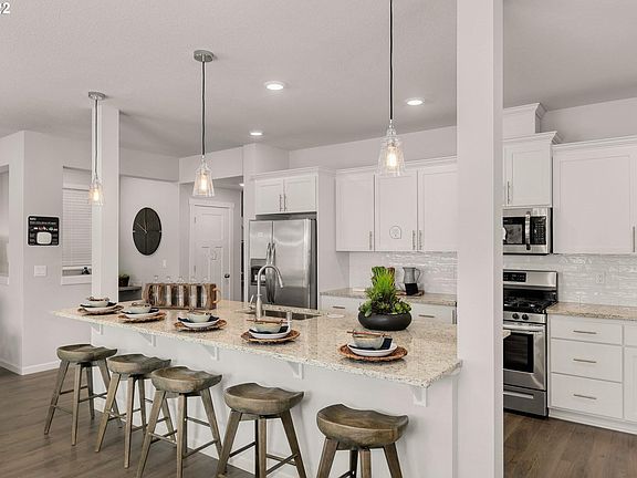 Nearing completion!Beautiful Ashland 3-car garage home design, located on a 60' x 134' home site!Entry showcases open rail staircase leading to Great Room concept featuring gas fireplace, dining area,tech niche,& 5-seater granite kitchen island.SS Gas appliances including 5 burner gas range & full tile backsplash. Main floor has laminate flooring throughout. All bedrooms & laundry on upper level. Blinds, fencing, landscaping,irrigation & home automation included! Interior Photos of similar home.